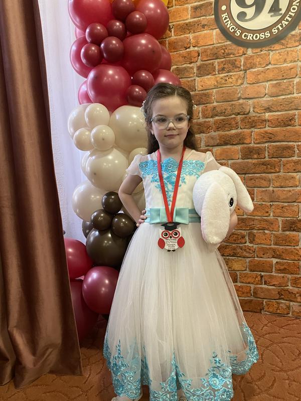 Продам плаття для принцеси на зріст від 104 до 128 см (довжина плаття не до підлоги, дитині зручно буде танцювати , на спинці регулюється шнурівкою ) Загальна довжина від плеча до низу 84 см, від плеча до низу бірюзового пояса 28, довжина пишноі спідниці 57 см.