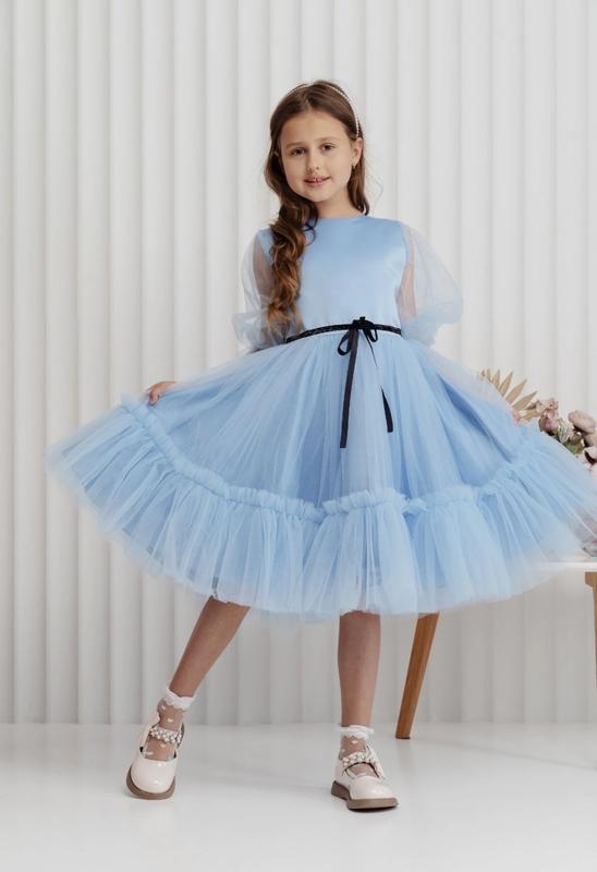 Сукня для принцес! Ткань - королевский атлас, евросетка. По спинке застегивается на молнию. Рукав короткий по локоть. Замеры: 122 длина - 71см, полуобхват груди - 34см. 128 длина - 74см, полуобхват груди - 34см. 134 длина - 78см, полуобхват груди - 36см. Мс