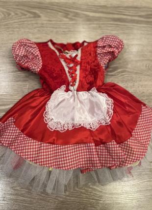 Сукня двостороння карнавальна! На новий рік, день народження, або на ялинку. Червона Шапочка та Білосніжка. На дівчинку 1 року. Довжина виробу 49 см. Талія 20 см. Спідниця-пачка. Комірець на липучці, можна прибрати.