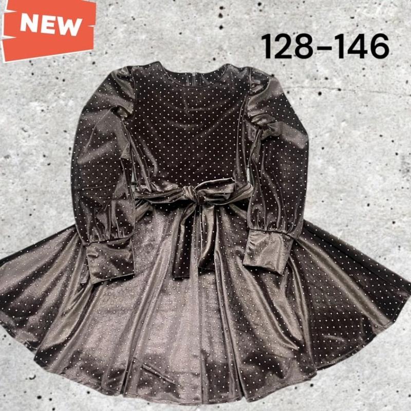 В наявності! Стильна велюрова сукня По спинці застібається на блискавку, поясок в комплекті. Тканина - велюр оксамит із крапинкою, м'якенька та ніжна. Заміри: 128 довжина - 70см, напівобхват грудей - 30см, рукав від плеча - 52см. 134 довжина - 73см, напівобхват грудей - 32см, рукав від плеча - 54см. 140 довжина - 75см, напівобхват грудей - 35см, рукав від плеча - 56см. 146 довжина - 78см, напівобхват грудей - 36см, рукав від плеча - 58см.