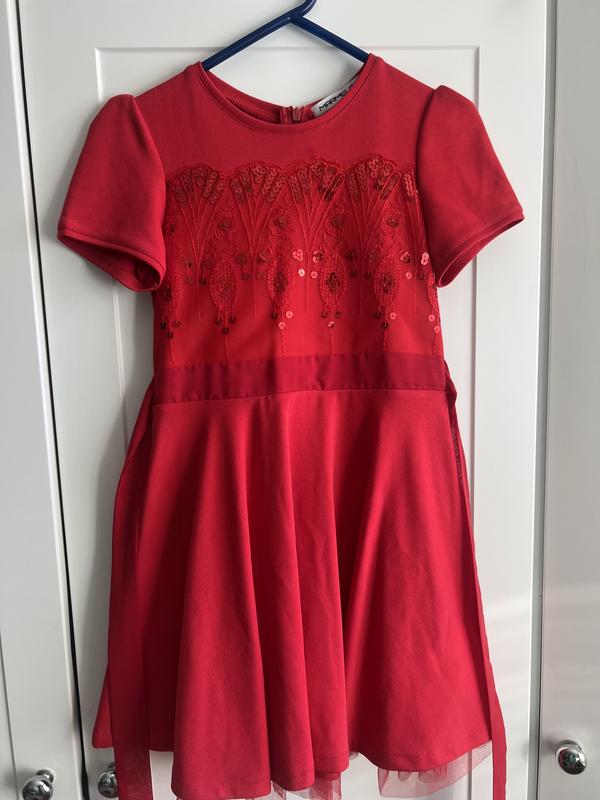 Трикотажное праздничное платье, украшенное пайетками и фатином.Оденена 1 раз
