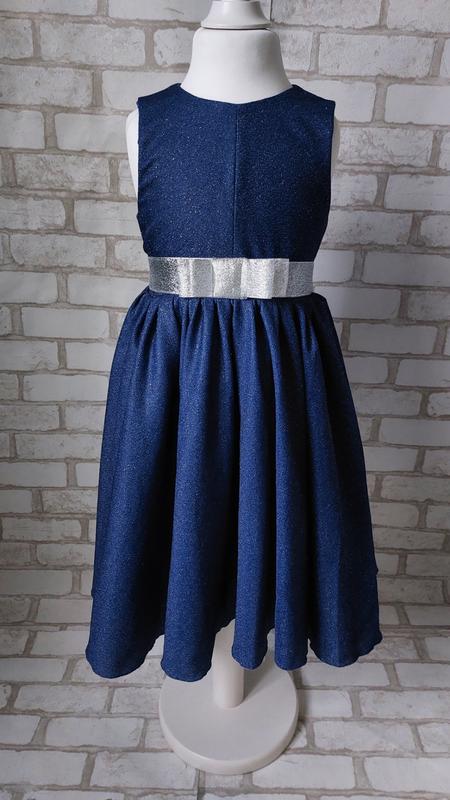 Нарядное синее платье на девочку с люрексом в идеальном состоянии Размер 5-6 лет, рост 110-116 см Замеры: длина спереди 68 см и сзади 73 см см полуобхат груди 32 см полуобхат талии 32 см цвет: синий, блестящий, серебристый состав: верх полиэстер, подкладка с фатином,полиэстер, с люрексом Ручная работа (Handmade).