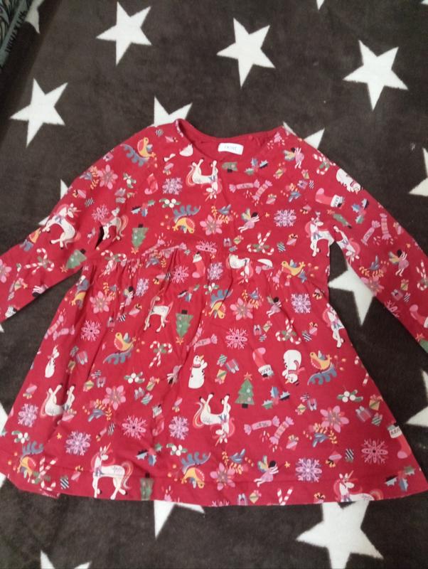 Сукня з новорічним принтом. Довжина 48 см, ног - 32, рукав - 37