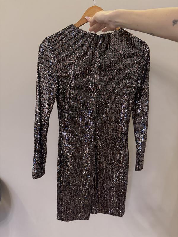 Вечірня, новорічна сукня Mango, в паєтки, довжини вище коліна.