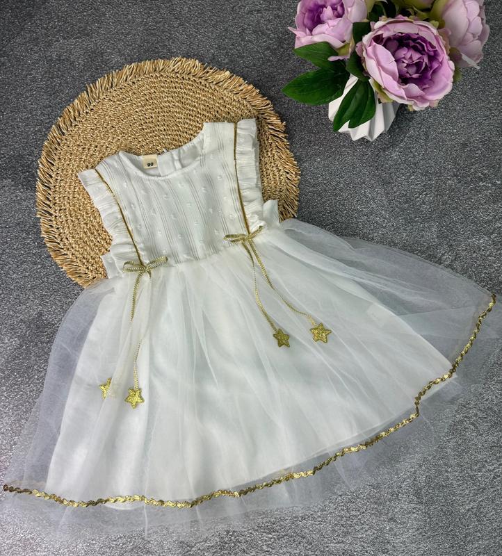 Неймовірно стильна та нарядна сукня 🔥 Знизу на бавовняній підкладці Прикрашена золотою вишивкою та зірочками Дуже гарно сидить на дитині Гарна якість!Рекомендую ✅ 90 - довжина 50 см, шир 25 см(4 шт) 100- довжина 54 см, шир 26 см(4 шт) 110- довжина 59 см, шир 28 см (4 шт) 120- довжина 62 см, шир 29 см(4 шт) 130- довжина 68 см, шир 31 см(4 шт) 140- довжина 74 см, шир 33 см(4 шт)