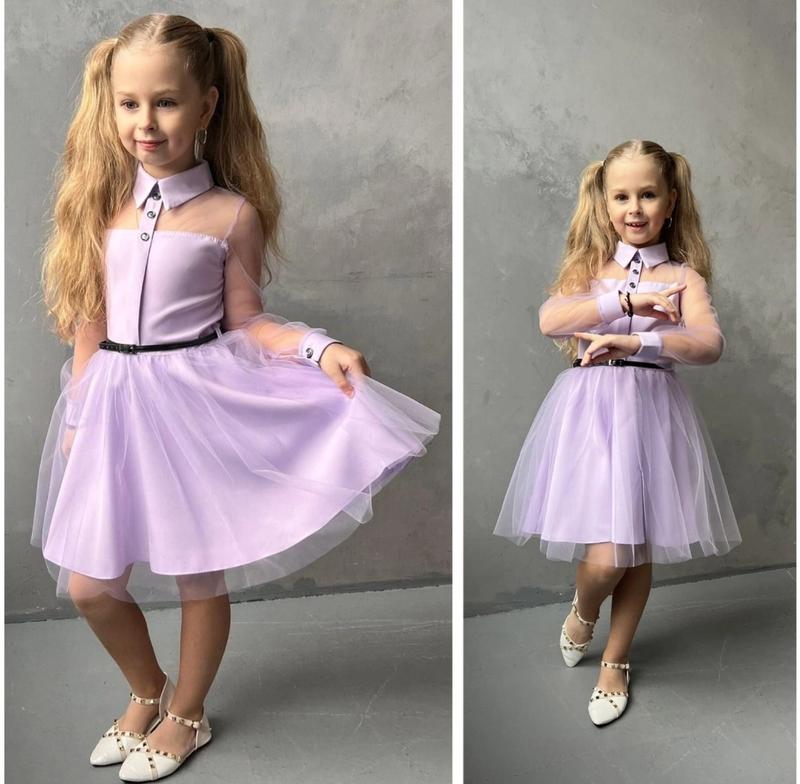 Стильна сукня для дівчинки. По спинці застібається на блискавку та ґудзик. Тканина костюмка + євросітка. 128 - довжина - 65см, напівобхват грудей - 32см, рукав від плеча - 44см. 134 - довжина - 70см, напівобхват грудей - 33см, рукав від плеча -46см. 140 - довжина - 73см, напівобхват грудей - 35см, рукав від плеча -49см. 146 - довжина - 78см, напівобхват грудей - 36см, рукав від плеча -52см. Мс