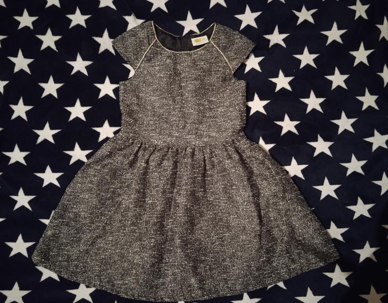 Очень красивое платье, прошитое серебристой нитью, на фото не очень видно. При необходимости сниманию видео. Длина 66 см. ПОТ 31 см. разрез рукава 11 см. длина замка 35 см. На возраст 6 лет. Качественное платье, с атласной подкладкой. Очень праздничная, на свету сверкает серебром.