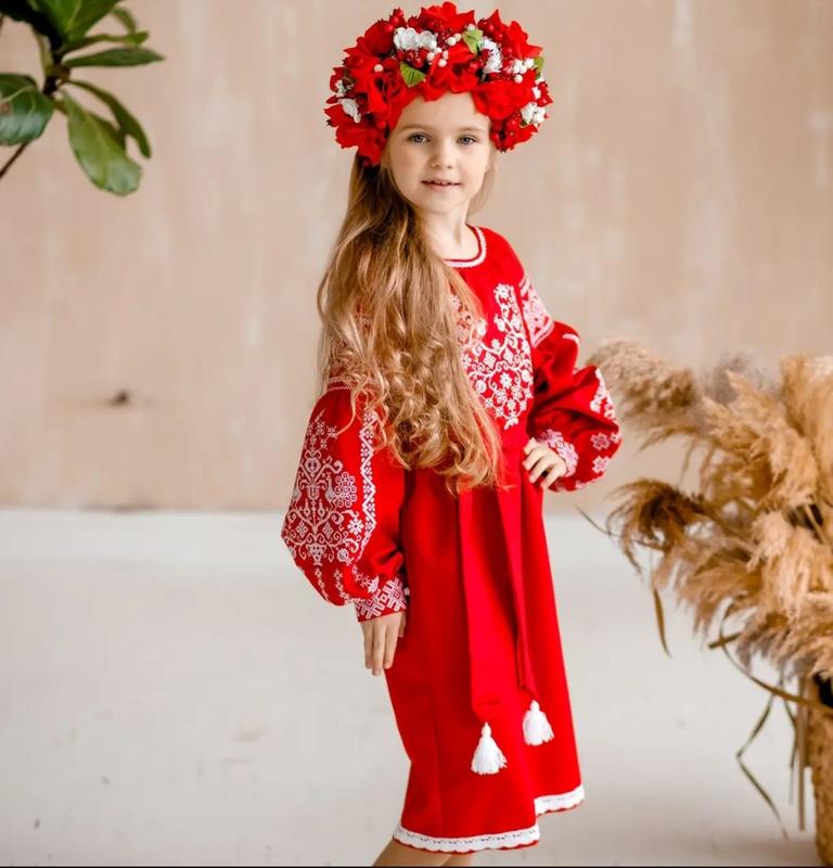 Платье вышитое платье вышиванка для девочки красная синяя голубая домокатанная ткань натур...
