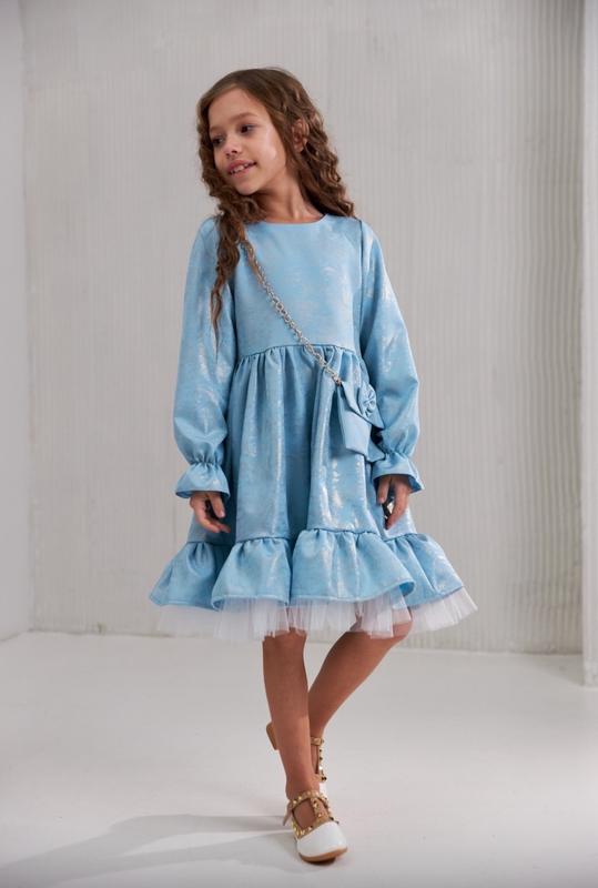 Стильна, неймовірна сукня для красунь 🎀🌸🎀 Пишна спідниця з фатиновою доріжкою 😍 В комплекті сумочка 👛 Позаду застібка ґудзик 👌🏻В рукавичках резиночка ☺️ Тканина: костюмка з напиленням 💓 Виробник: Україна 🇺🇦 ЗАМІРИ +/-1-2см!!! ▪р.104- довжина сукні від плеча 61см/ рукав від плечового шва 39см / ПОГ 28см/ довжина спідниці 37см ▪р.116- довжина сукні від плеча 69см/ рукав від плечового шва 42см / ПОГ 31см/ довжина спідниці 42см ▪р.122- довжина сукні від плеча 71см/ рукав від плечового шва 45см / ПОГ 32см/ довжина спідниці 44см ▪р.128- довжина сукні від плеча 74см/ рукав від плечового шва 48см / ПОГ 32см/ довжина спідниці 47см