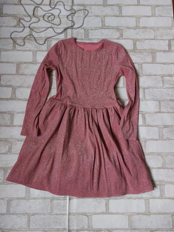 Нарядное праздничное платье на девочку розовое с люрексом в очень хорошем состоянии Размер 11-12 лет, рост 146-152 см Замеры: длина 78 см рукав 51 см полуобхат груди 38 см полуобхат талии 36 см цвет: розовый, блестящий, серебристый состав: верх полиэстер, подкладка с фатином,полиэстер, с люрексом. Ткань хорошо тянется.