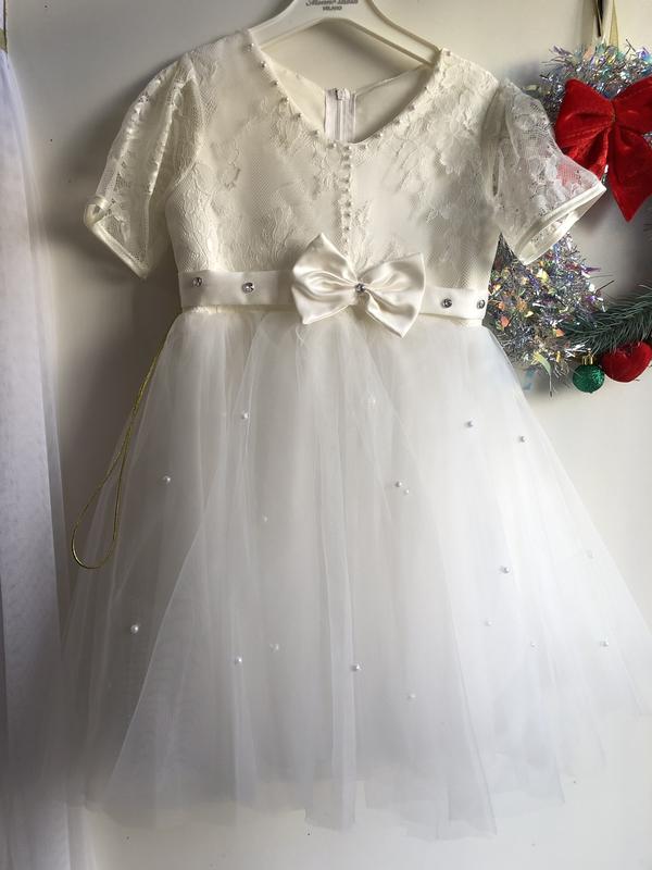 Шикарна нова сукня для принцесі на 3-5 років Довжина 62-63 см Ширина 30 см Шарів фатина 4 + подюбник Колір айворі