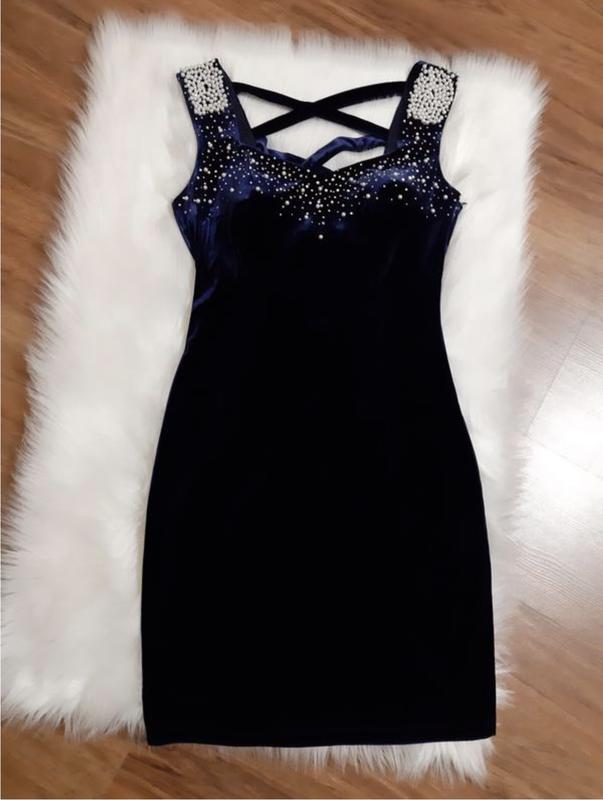 Праздничное платье, бархатное с подкладом, прекрашенное жемчужинками и камушками, длина- 89 см, идет на размер 38-40 ( евроразмер) Обхват талии- 70 см, обхват бедер-92 см, обхват груди- 90 см, синего цвета.