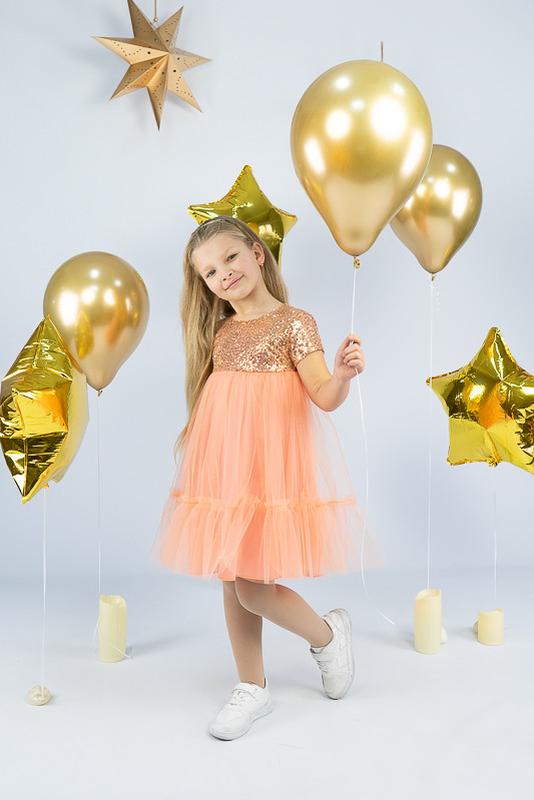 Полотно: пайетка, евросетка Замеры: в описании Рост: 86-122 cм В этом нарядном и легком платье на любом празднике ваша девочка будет выглядеть как настоящая принцесса. Переливающиеся пайетки пышная двухъярусная юбка создадут незабываемый образ. Платье сшито из комбинации различных материалов. Верхняя часть платья изготовлена из пайеточного материала, а верхние слои юбки из евросетки - мягкого фатина, отлично держащего форму. Общего подклада служит тонкое и мягкое кулирное полотно, которое защищает от дискомфорта пайеток. По спинке проходит застежка – кнопки.