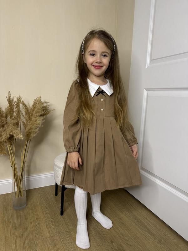 Неймовірно вишукана та стильна сукня в трендовому кольорі з актуальним комірцем. В наявності в розмірах: 90 - Довжина 49см Рукав 31см 100 - Довжина 51см Рукав 33см 110 - Довжина 54см Рукав 35см 120 - Довжина 57см Рукав 37см 130 - Довжина 62см Рукав 40см 140 - Довжина 67см Рукав 44см