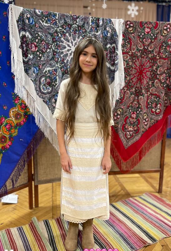 Сукня з льону з мереживом двійка фартух та сукня з розрізами