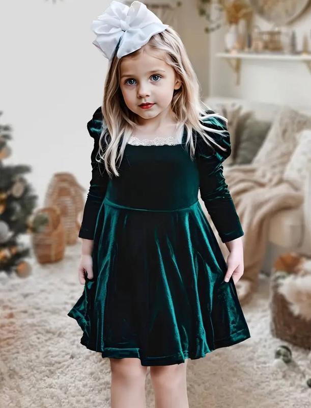 Велюровое зеленое платье для девочек