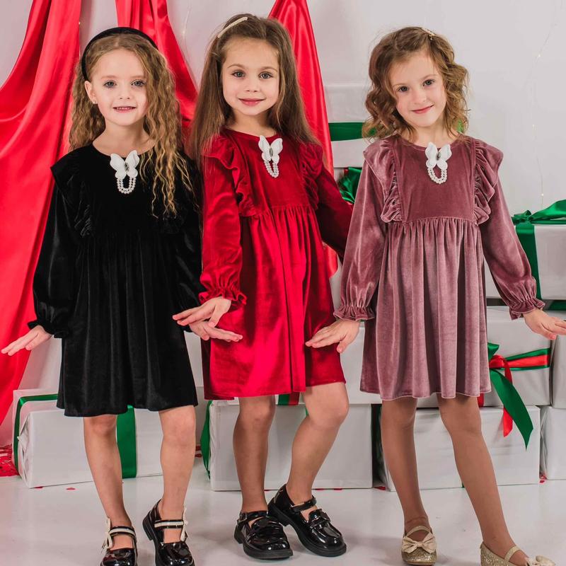 Плаття «Міра» Розміри:92,98,104,110,116; Тканина: бархат Брошка знімається Червоний Чорний Синій Пудра Бежевий