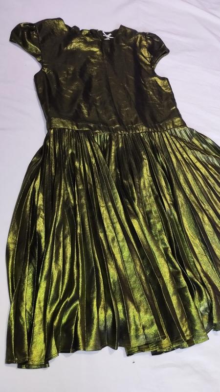 Шикарное платье на девочку цвета хамелеона. Переливается разными оттенками зеленого. Очень приятная шелковистая легкая ткань, не мнется. Лучше всего подходит к празднованию нового года Змеи.