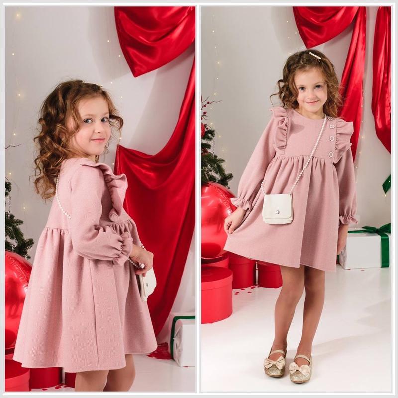 Артикул: 7290 Платье «Поля» Размеры:92,98,104,110,116; Тканина: шерсть ялинка Цена: 655 грн Сумочка в комплекті Пудра Кремовый Розовый