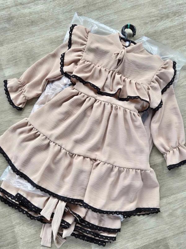 Красивое и нежное платье Тканина креп-жатка украшена кружевом завязывается под поясок КАЧЕСТВО ЧУДОВА!! РЕКОМЕНДУЮ!!! длина/пог/рукав 134 - 74/39/45 140 - 76/40/48 146 - 78/42/50 152 - 82/43/55 55
