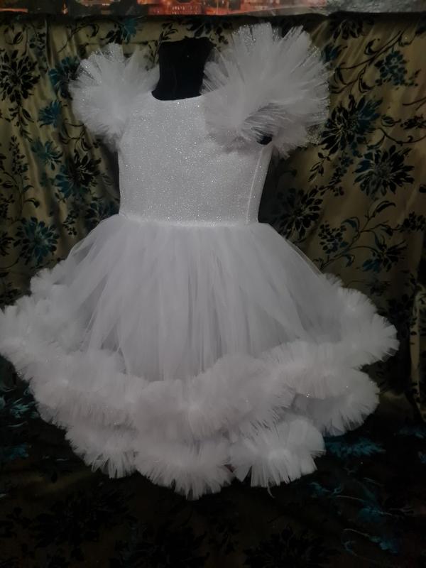 цвет белый.крышка и рюшки с блеском.л.иф ткань глиттер подклад м...кий стрейч шелк.риентируйтесь на мерки обхват груди 64 обхват таліі6 2 длина платья 64 по желанию могу вшить на размер или два меньше
