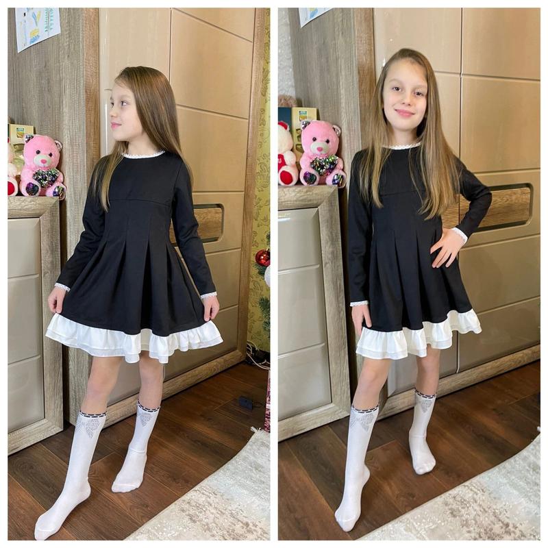 В наличии 💙💛 Цена 845 грн Изысканное платье для красавиц 💗 Ткань замш диагональ, украшена кружевом Сзади застегивается на молнию Замеры: длина/ширина под руками/рукав от плеча 122 - 61/30/41 - ⚫⚪ 128 - 66/31/44 - ⚫ 134 - 67/33/46 - ⚫ 140 - 68/35/49 - ⚫ ▪️N-16