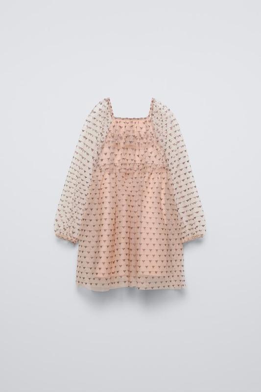 Цена 1350 86-116 см Платье с прямой горловиной и длинными рукавами из резиновой отделки. Нанесите рюши. Тюлевая деталь с принтом сердечка. Медь | ************