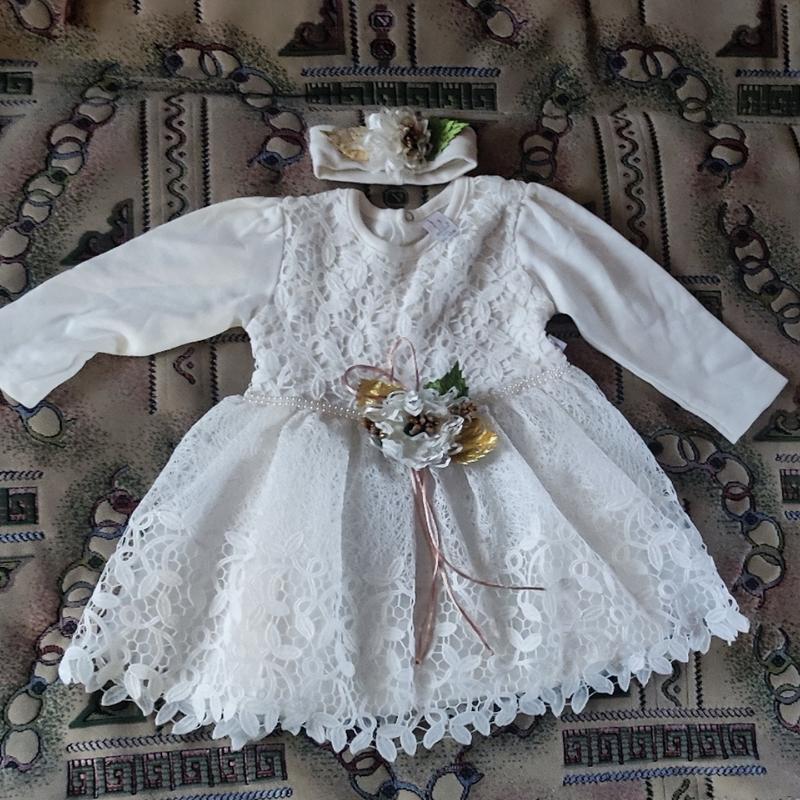 платье наделось только пофотографироваться в хорошем состоянии, только повязка эта что на голову не очень стан, ребенок ею играл, Длина платья от плеча 39 в груди 25 в поясе 27