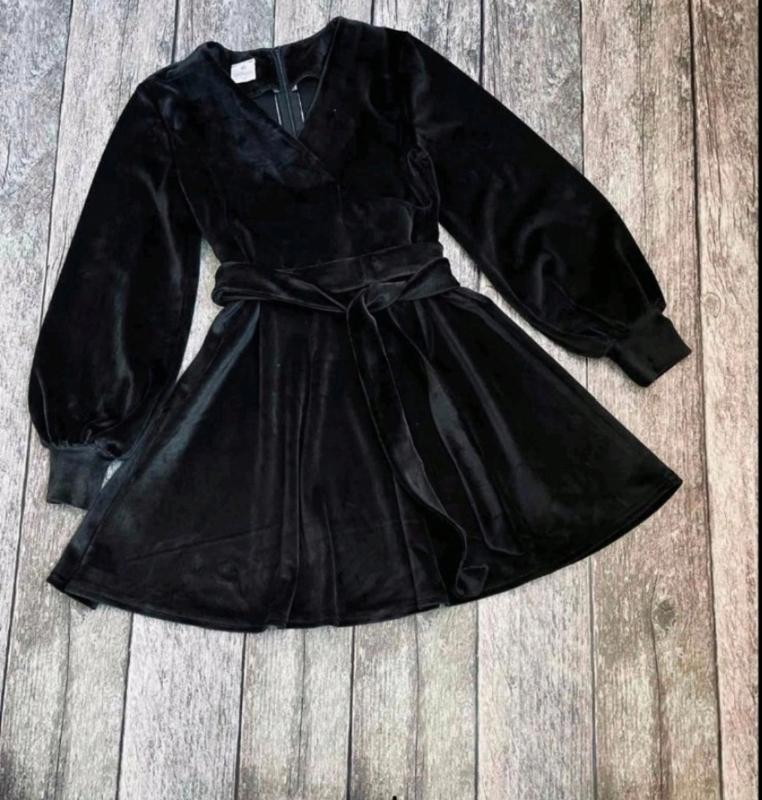 Стильное платье для модниц По спинке к поясу застегивается на молнию. Спереду на запах. Пояс в комплекте. Ткань королевский велюр, мягкий и нежный. Замеры: 140 длина - 69см, рукав от плеча - 52см, полуобхват груди - 38см 164 длина - 87см, рукав от плеча - 63см, полуобхват груди - 45см