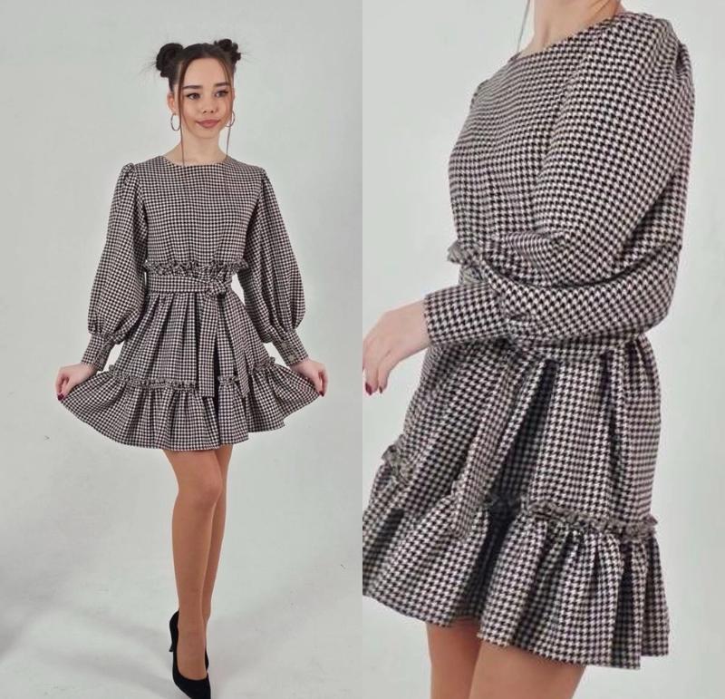 арт 4294 платье тканина костюмкаʼʼ гусячя лапкаʼʼ примна на дотик по спинке и на манжетах кнопки рукав фонариком с пояском ПОЛНОМЕРНЫЕ Рост/длина/пог/рукав от горловины похибка+-2см 140-146/68/35/52-1шт 146-152/70/36/53-1шт 164-170/83/41/64-1шт Тан