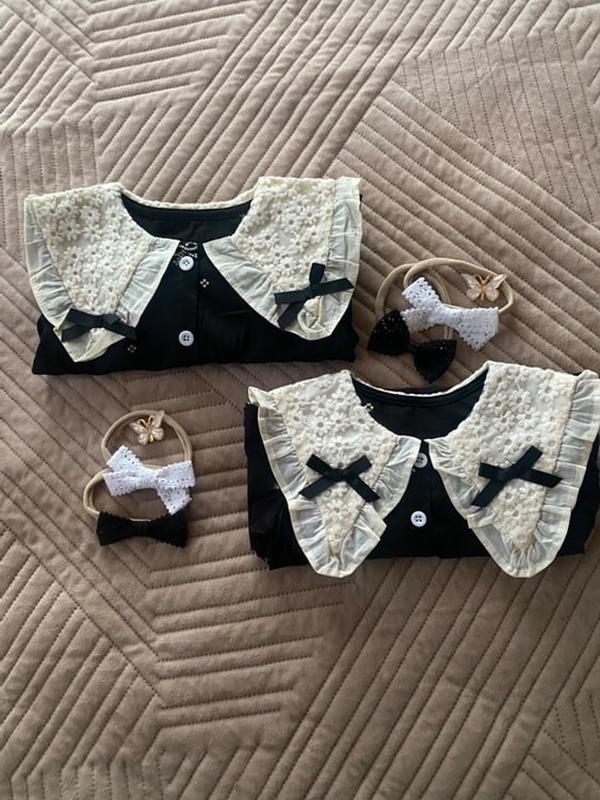 Новое черное платье с воротничком в размерах 6м, 9м, 12м, 2р, 3р, 4р, 5р, 6р, коттон, также есть повязки, колготы, гетры, и сумочка. Можно собрать замечательный лук