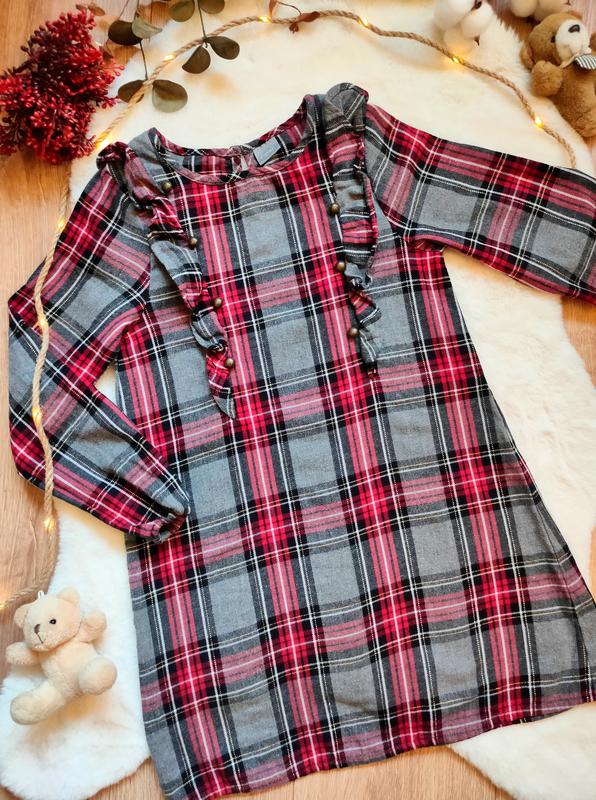 сукня від бренду Next для дівчинки віком 7 років , на зріст 122 см Мʼякенька, достатньо тепла, з тонкої байкової тканини. Оздоблена сяючою золотистою ниткою, воланами і бронзовими ґудзиками ✨ Заміри: Довжина 63 см Рукав 44 см Плечі 24,5 см Ширина під рукавами 32,5 см Склад: 79% бавовна 21% поліестер