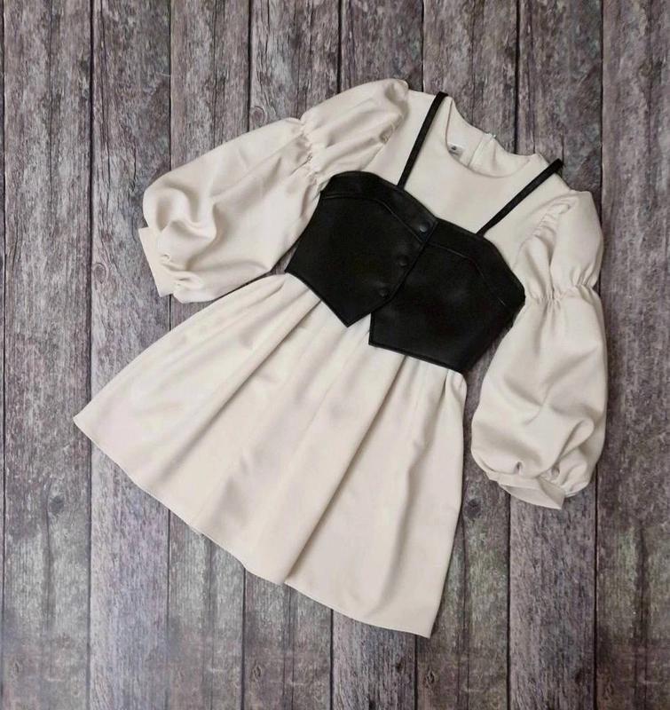 Невероятно нежное и романтичное платье Кожаный топ придает загадочность и романтизм образу. ткань костюма+экокожа Качество отличное! ПОГ/дл/рукав от шеи 140/34/72/55 146/37/76/59 152/39/82/64 158/41/86/66