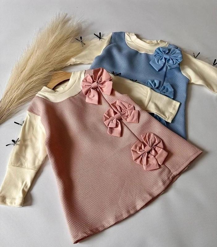 Очень удобная и мягкая Ткань - хлопок Украшена трикотажниками бантиками, они пришиты. Рукава украшены фатином и бантиками. Измерения 80-Длина 43 см Рукав от плеча 27 см объем груди 30 см 90-длина 45 см Рукав от плеча 29 см объем груди 30 см 100-длина 49 см Рукав от плеча 31 см объем груди 32 см 110-длина 53 см Рукав от плеча 33 см объем груди 33 см