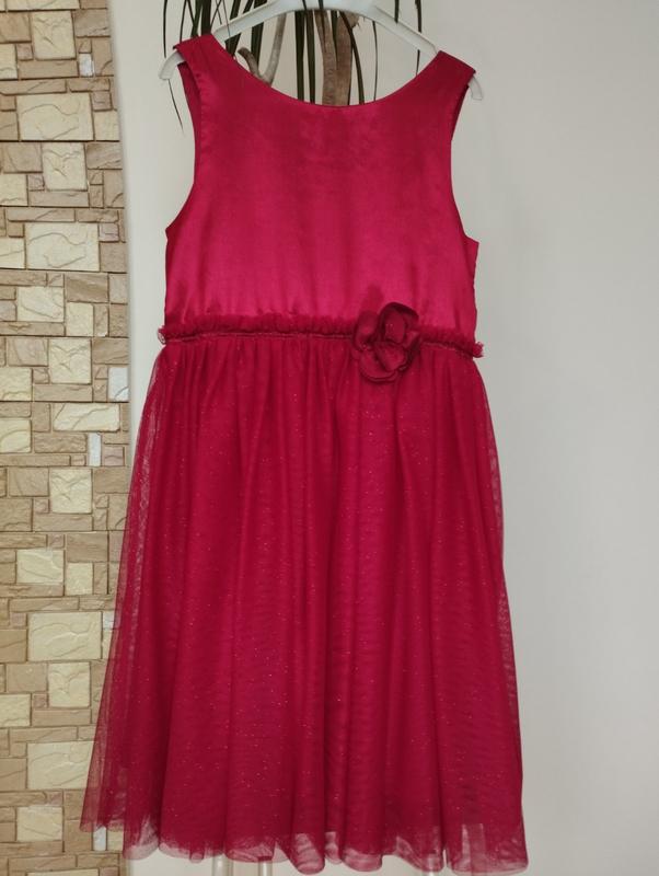 Красивое нарядное платье фирмы h&m. Надели дважды на празднование Дня рождения (бирка срезана). Состояние нового! Покупалось значительно дороже указанной цены. Все подробности на фото. - верх ткани не тянется - юбка многослойная (фото добавлено) 🏷️ размер 10 лет (хорошо сядет на рост не более 146 см) Замеры: длина от плеча вниз – 78 см, ширина в поясе – 35 см.