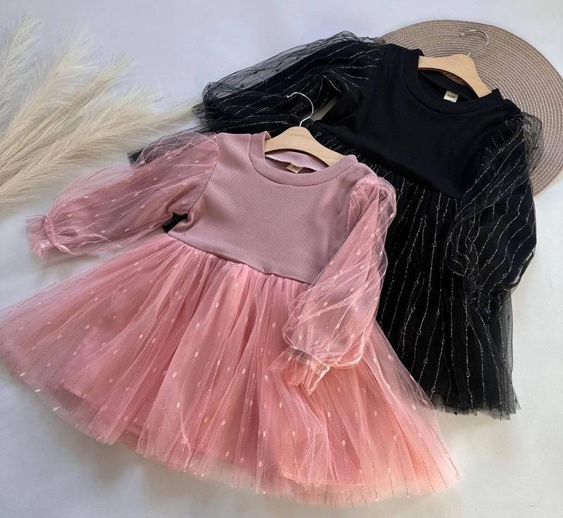 Підійде для свят, фотосесій і для повсякденного носіння Верх - трикотаж рубка Рукава прикрашені пишним фатином, на резиночках Фатин три шари Підкладка - хб Пишна спідниця яка прикрашена блискучими нитками Фатин на рукавах також прикрашений блискучими нитками Виміри 90-Довжина з фатином 50 см пояс 25*2 см Рукав від плеча з фатином 32 см 100-Довжина з фатином 53 см пояс 26*2 см Рукав від плеча з фатином 34 см 120-Довжина з фатином 59 см пояс 30*2 см Рукав від плеча з фатином 39 см 130-Довжина з фатином 61 см пояс 31*2 см Рукав від плеча з фатином 41 см