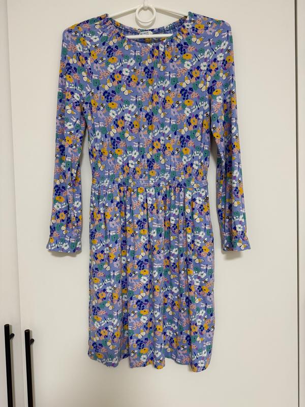 Яркое и нежное платье с красивым цветком принтом, с бабочками, пчелками и бабочками. Платье собрано на широкую резинку с карманами. Материал - мягкая вискоза Состояние новой вещи, ни разу не одета но выстирана и без бирки