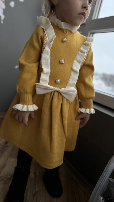 Сукня для дівчинки зима/весна вʼязка жовта стильна в садок школу 3 4 5 6 7 8 років