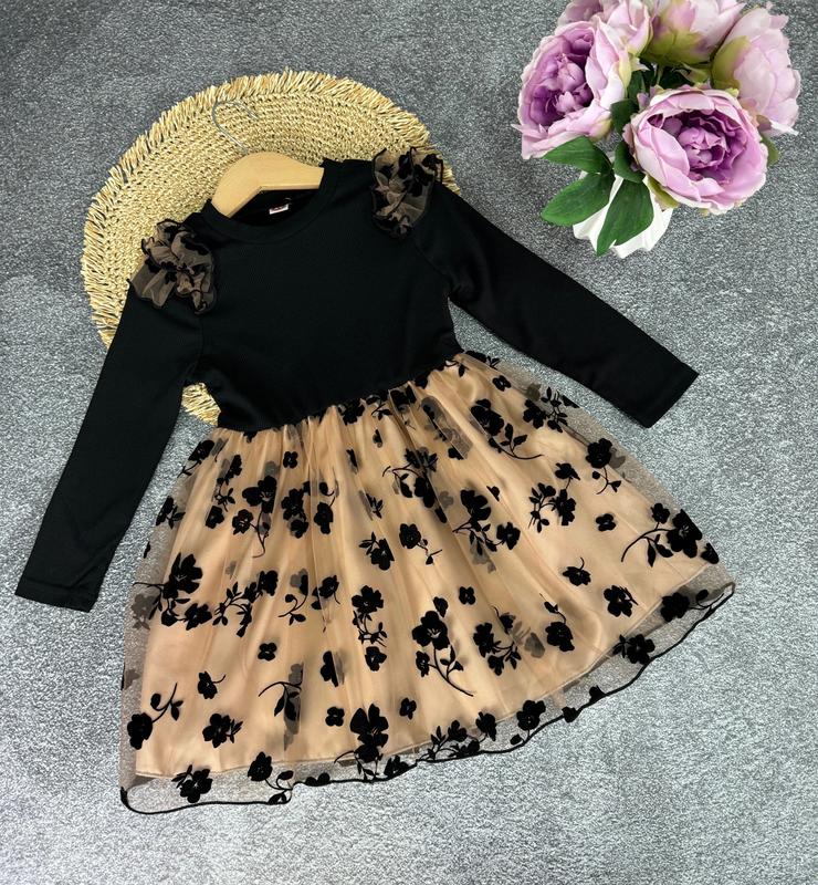 Новинка Весна 2025 Неймовірно гарна сукня 🔥 Тканина -бавовна Фатин з квітами Знизу на бавовняній підкладці Дуже гарно сидить на дитині 100/4 - довжина 55 см, шир 26 см ,рукав 40 см(3 шт) 110/5 - довжина 60 см, шир 28 см,рукав 43 см (4 шт) 120/6 - довжина 64 см, шир 29 см,рукав 46 см. (5 шт) 130/7 - довжина 69 см, шир 31 см,рукав 49 см. (5 шт) Замір рукава від горловини Ціна