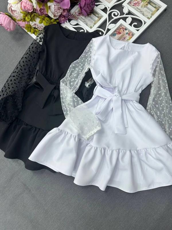 под заказ 1-5 роб.днев РЕКОМЕНДУЕМ. Очень красивое праздничное нежное платье. 🫶 🌹Ткань: костюмка+ евросетка 🌹Платье сзади на пугавке 🌹Дополнительно: талия и рукава на резинке 🌹! В комплекте идет пояс-завязка Замеры: +-1-2 см ✔️р.98- Платье: длина см 57/ длина рукава 42см/ полный ОГ 58см. - ✔️р.104- Платье: длина 60см/ длина рукава 44см/ полный ОГ 60см. - ✔️р.110- Платье: длина 63см/ длина рукава 46см/ полный ОГ 62см. - ✔️р.116- Платье: длина 65см/ длина рукава 48см/ полный ОГ 64см. - ✔р.122- Платье: длина 67см/ длина рукава 50см/ полный ОГ 66см. - ✔р.128- Платье: длина 69см/ длина рукава 52см/ полный ОГ 68см. - ✔р.134- Платье: длина 70см/ длина рукава 54см/ полный ОГ 71см. - ✔р.140- Платье: длина 71см/ длина рукава 55см/ полный ОГ 74см. - ✔р.146- Платье: длина 73см/ длина рукава 58см/ полный ОГ 76см. - ✔р.152- Платье: длина 78см/ длина рукава 60см/ полный ОГ 80см. - ✔р.158- Платье: длина 81см/ длина рукава 62см/ полный ОГ 83см. - ✔р.164- Платье: длина 83см/ длина рукава 63см/ полный ОГ 85см. -