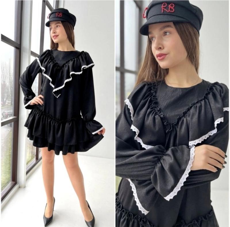 Стильное платье для девушек с кружевом По спинке застегивается на пуговицу. Поясок в комплекте. Тканина - супер - софт. Замеры: 152 длина от плеча - 80см, полуобхват груди - 44см, рукав от плеча - 55см. 158 длина от плеча - 82см, полуобхват груди - 45см, рукав от плеча - 58см. 164 длина от плеча - 86см, полуобхват груди - 47см, рукав от плеча - 60см. 170 длина от плеча - 88см, полуобхват груди - 49см, рукав от плеча - 62см. Мс