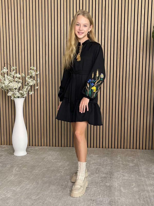 ландыш 🎀В НАЯВНОСТІ Нежное платье Ткань креп костюмка,на рукавах настоящая вышивка Пояс в комплекті Можно носить с поясом и без 🎀128-пог 38,рукав 45,длина 67 🎀140-пог 40,рукав 48,длина 71 🎀152-пог 43,рукав 50,длина -75 🎀164-пог 46,рукав 51,длина 80 +-2см