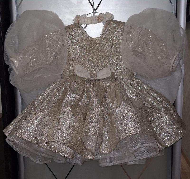 праздничное платье детское с бантиком подходит на размер 86-92 в комплект входит венчик, пинетки