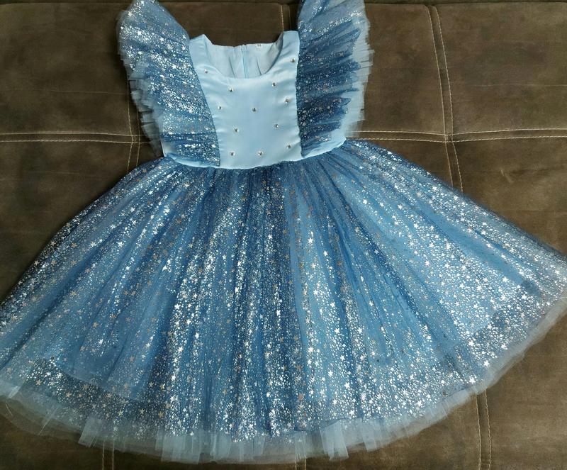 🌹чарівна святкова сукня 🌹 колір блакитний / верхній шар фатину темніший , зірочки срібні верх: атлас , бавовняна підкладка, рюші тришарові низ : три шари фатину +дві шифонові підкладки ,пишне застібається на змійку бантик кріпится на кнопки ЗАМІРИ довжина повна / від плеча до пояса / ширина по грудях ✅8**********р 56/21/28 ✅100р 60/22/30 ✅110р 66/25/32 ✅120р 70/26/34 похибка +-1см НАЯВНІСТЬ 80р 9шт 90р 5шт 100р 6шт 110р 5шт 120р 5шт