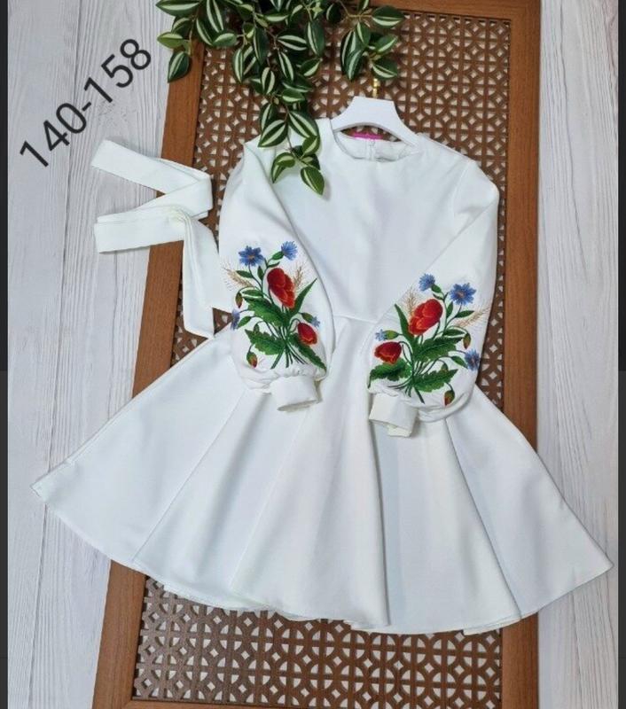 Тканина костюмка На рукавах настоящая вышивка "маки" Пояс в комплекті КАЧЕСТВО ЧУДОВА!!! РЕКОМЕНДУЮ!!! 140-длина 75, пог 36,рукав 49 146-длина 78, пог 37,рукав 51 152-длина 81,пог 39,рукав 53 158-длина 85,пог 40,рукав 54 +-2 см