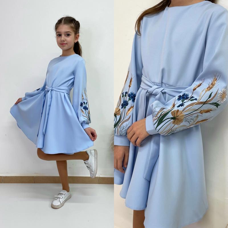 Невероятно красивое и нежное платье На рукавах настоящая вышивка Поясок в комплекте Можно носить с поясом и без по спинке глубокая молния Тканина костюмна Супер качество рекомендую!!! рост/длин/пог/рукав от горловины похибка+-2см 146/78/38/59 152/81/39/63 158/85/40/67