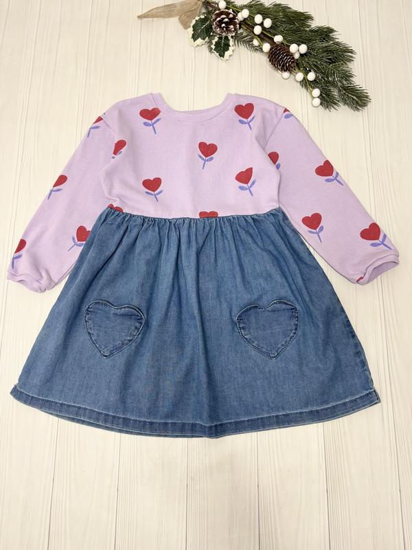Хорошее платье на 4-5 лет. Верх двунитка, низ не очень платный джинс. Длина 57, в поясе 30, рукав от воротника 43.