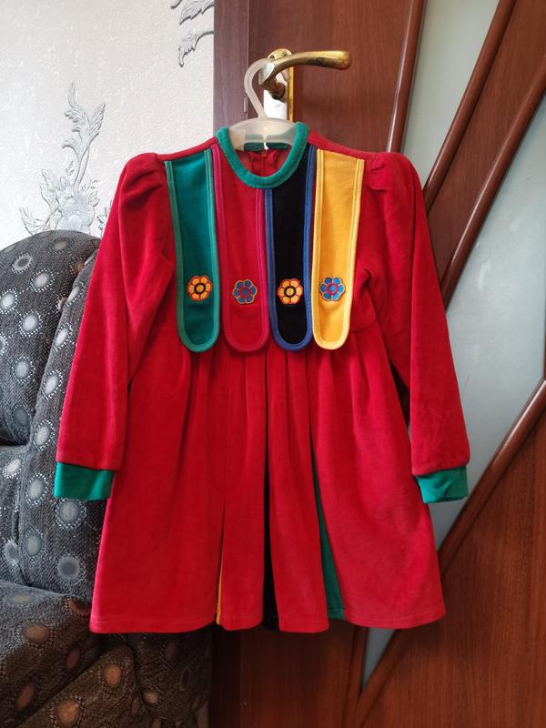 Новое платье, нам подарили, мы ни разу не влюблены. Цвет красный, на возраст 3-4роки Ширина в груди 29см Длина рукава 38см Длина платья 54/55см Качество очень высокое, велюр, платье привезено из за границы Цена 200грн