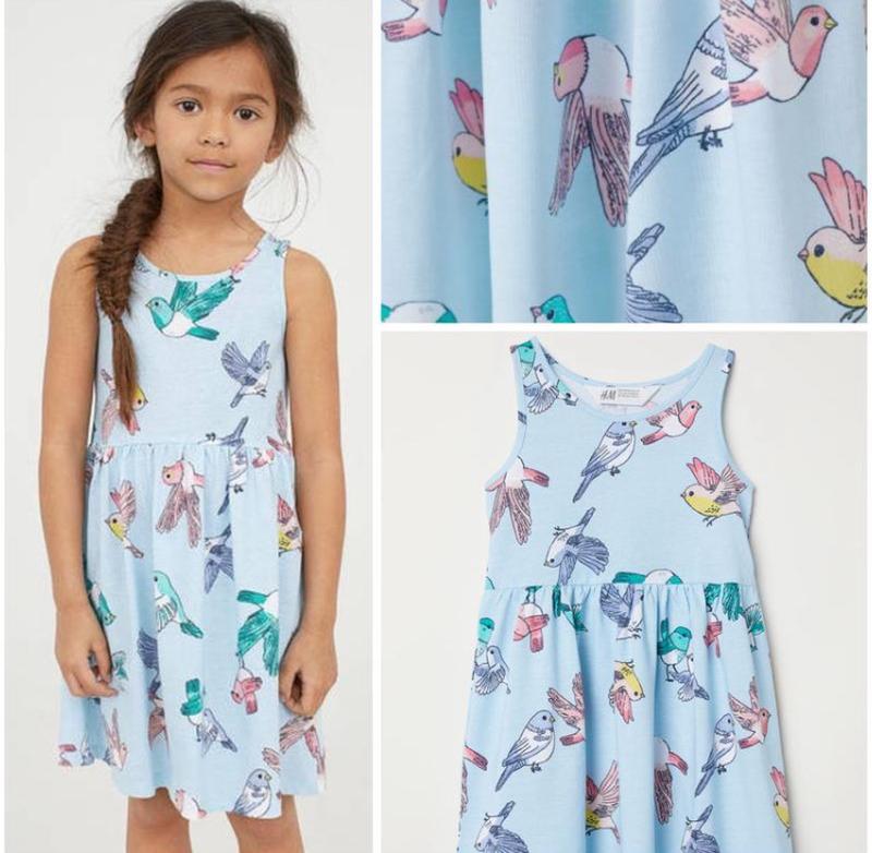 Платье сарафан небесного цвета Принт пташки Размер 2-4
