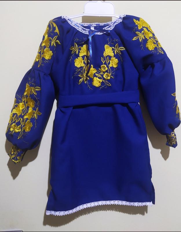 Вышитое платье для девочки вышиванное платье синее и желтое